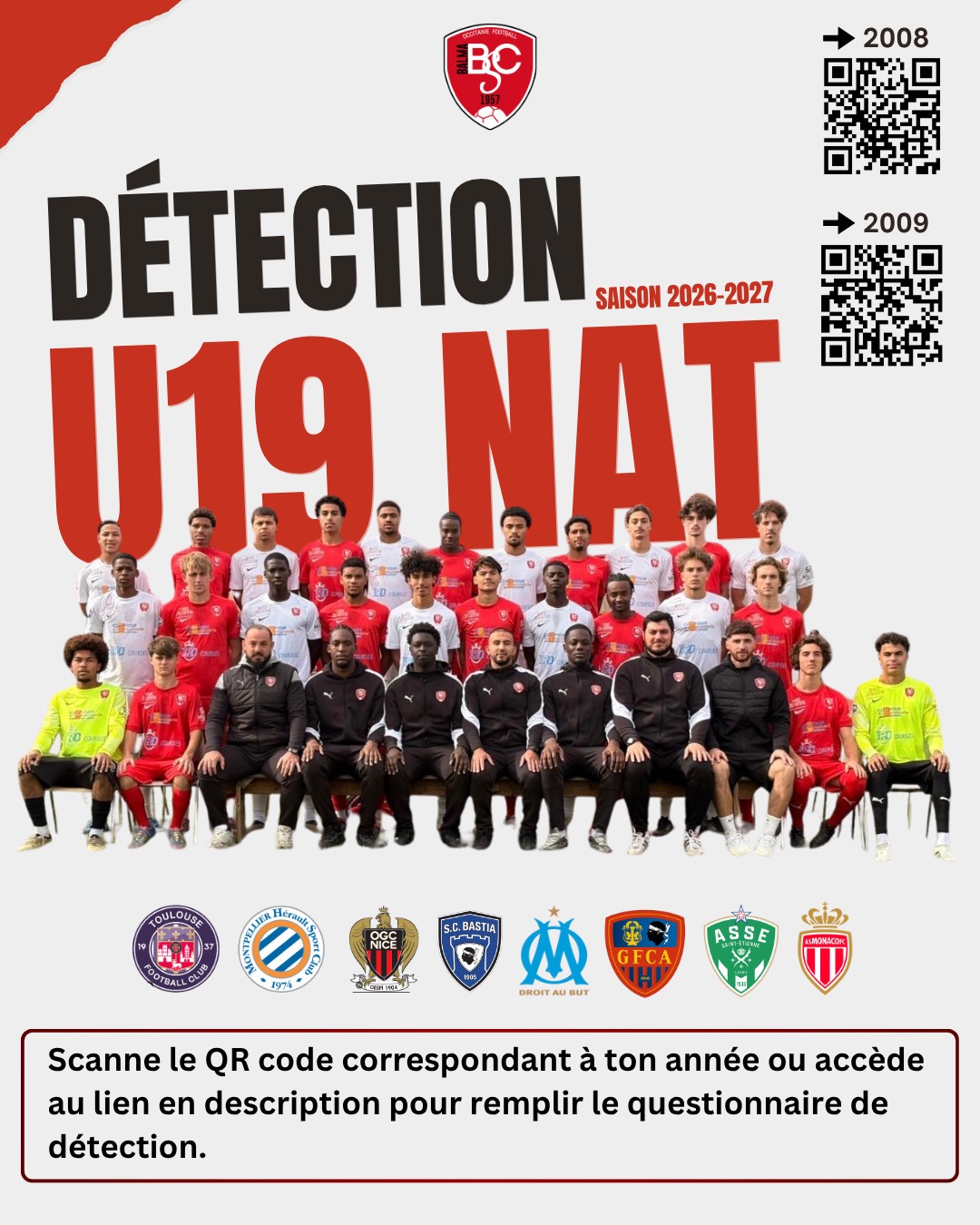 Le club ouvre ses détections U19 National pour la saison 2026/2027 à destination des joueurs nés en 2008 et 2009 🔴⚪️