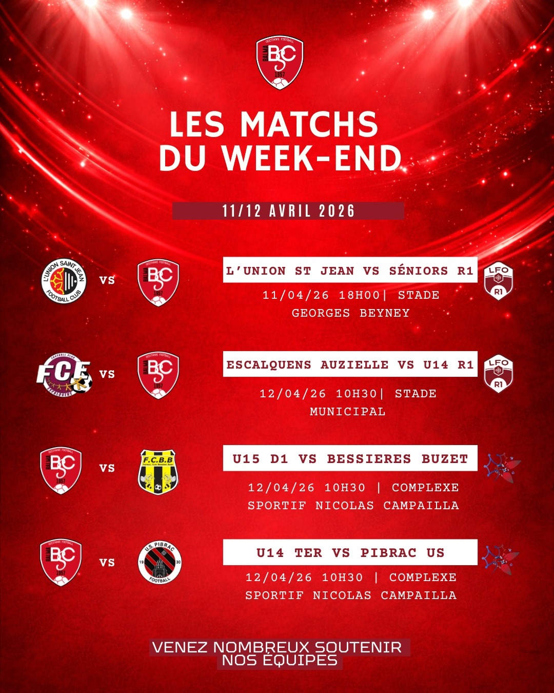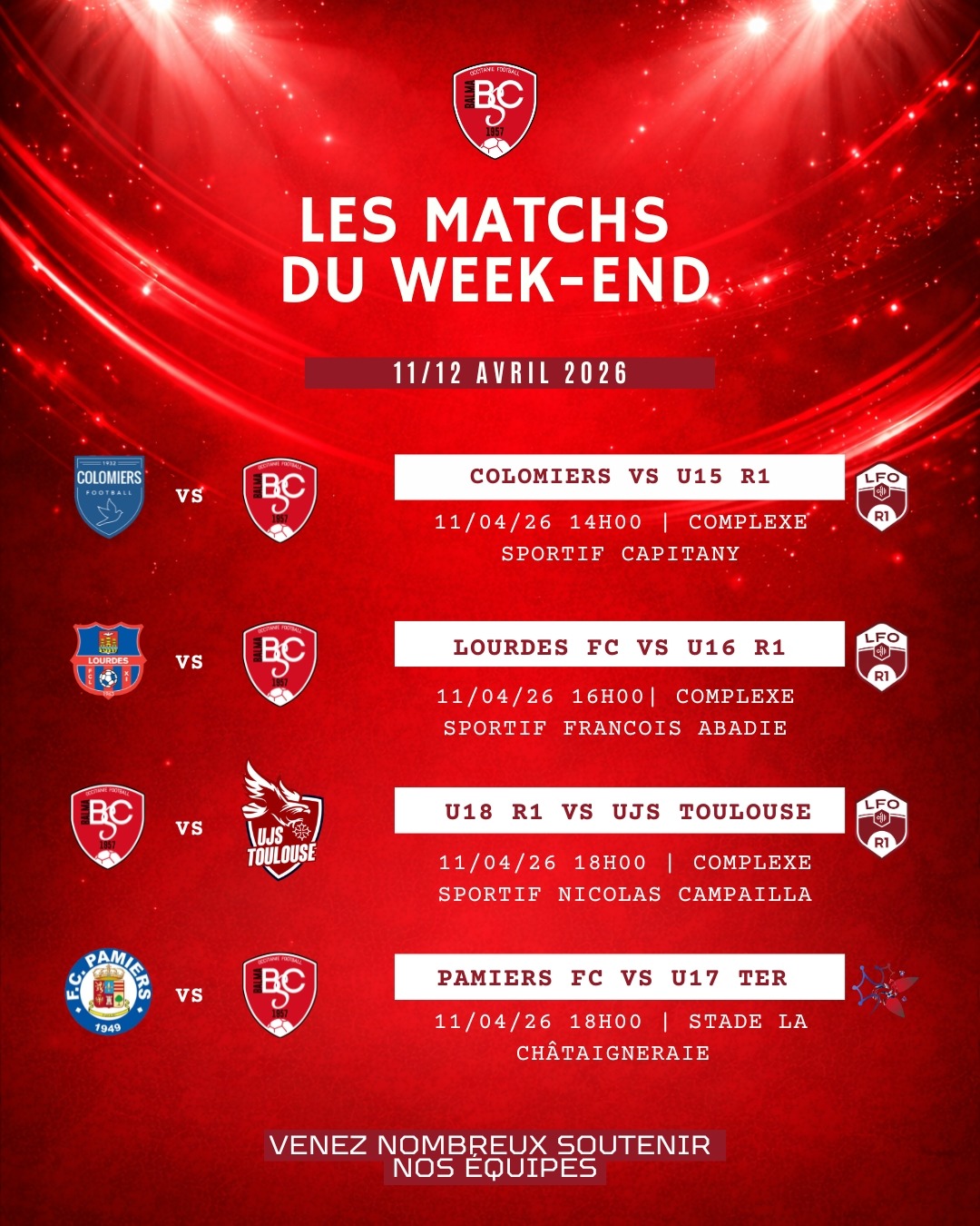 Il y a 5 jours 9 avril 20269 avril 2026Farah Les Matchs Du Week-End Par Farah 🔥 Matchs du week-end 🔥 📅 11 & 12 avril 2026 Venez nombreux encourager nos équipes 🔴⚪