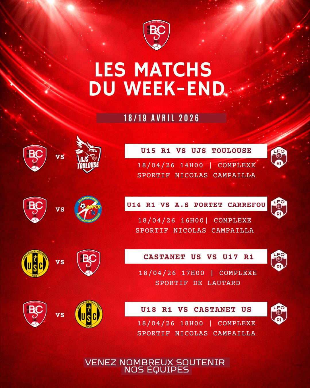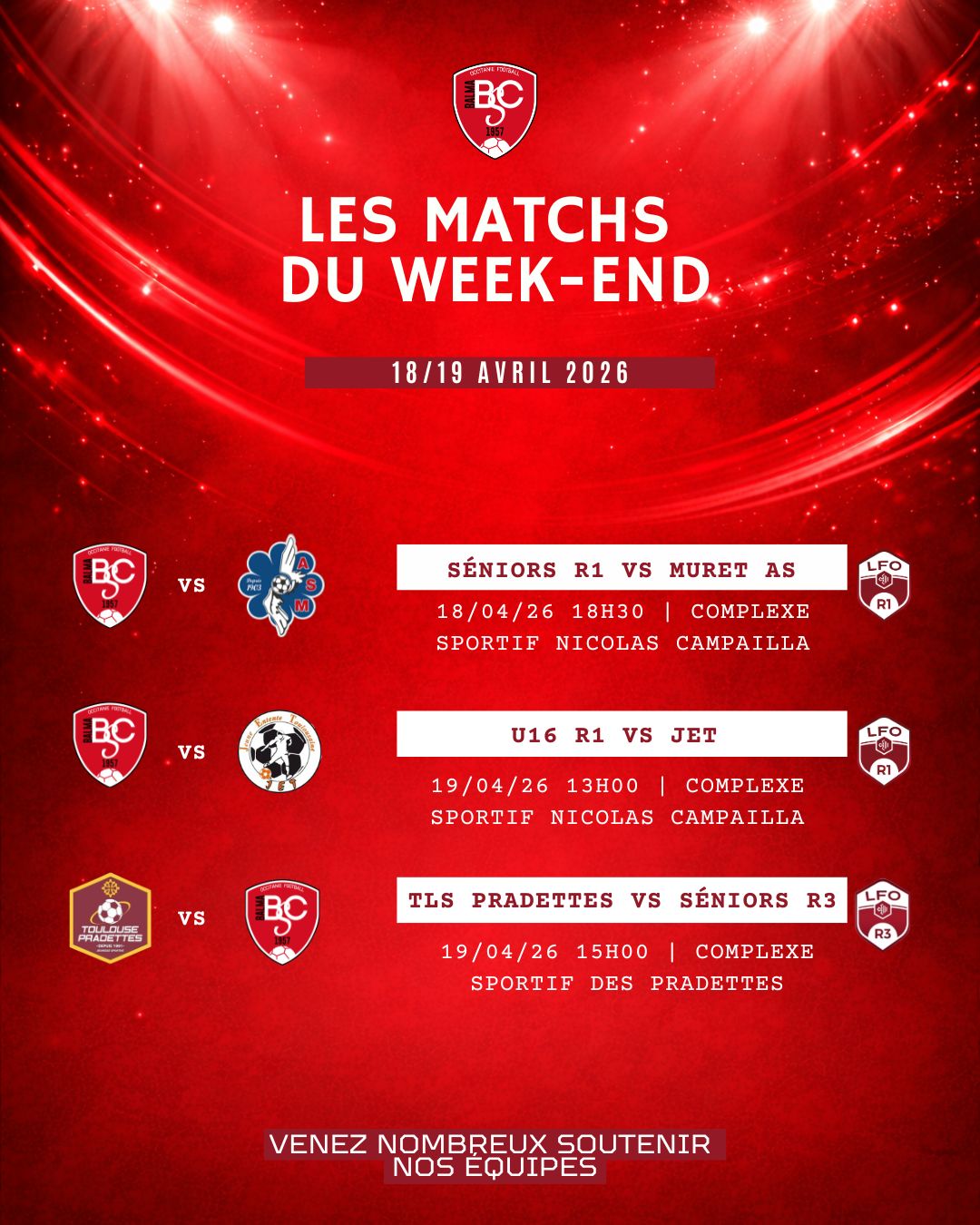 🔴⚪️ MATCHDAY WEEK-END 18/19 avril 2026