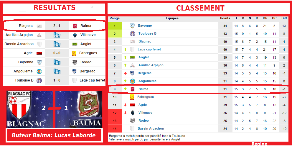 Fabrice Dubois (entraîneur de Balma) : «Cela fait deux mois que tous les matchs se ressemblent. On les aborde très bien, on fait ce qu’il faut, mais on n’est pas récompensés. Même si c’est cruel, avec ce penalty à la 90e, on est fautifs. On est trop joueurs, je n’en veux pas aux joueurs je suis triste pour eux. Cela pouvait basculer dans un sens comme dans l’autre, chaque équipe a eu ses temps forts. C’est la place au classement qui fait la différence au niveau de la confiance.»